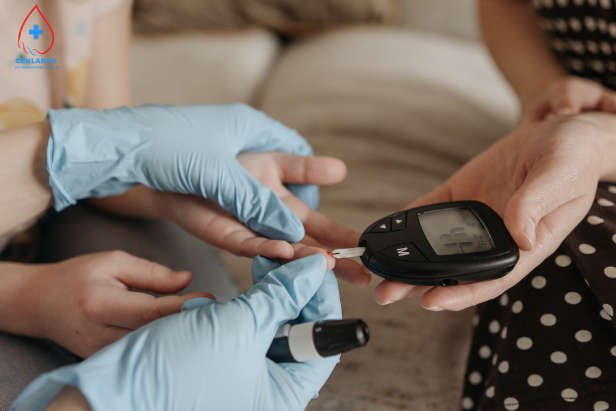 - Kỹ thuật viên xét nghiệm hoặc điều dưỡng tiến hành lấy máu để định lượng đường huyết lúc đói.